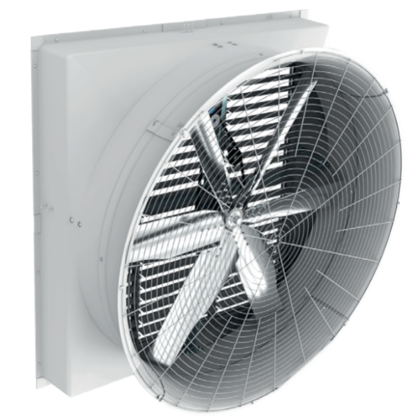 トンネル畜舎に必須の排気用ファンです。 建物内の陰圧による排気特性の減少を抑える強度のあるブレードを装備しています。 小型から大型までのラインナップで設計の自由度を高めます。